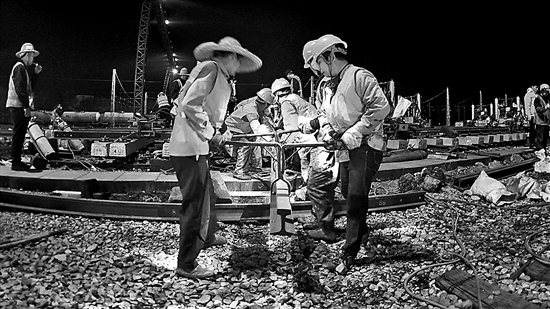 春运前夕,中铁南宁局集团公司组织力量对西部陆海新通道的重要节点——黎塘站“枢纽咽喉”处的道岔设备进行整体更换,为春运保驾护航。新华社记者 张爱林 摄