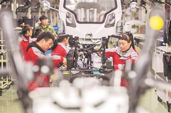 1月19日,位于浙江省湖州市长兴经济技术开发区的浙江睿璞智能汽车股份有限公司数字化车间,工人在生产线上忙碌作业,赶制来自巴西、意大利、西班牙等境外客户的新能源微型物流车订单。