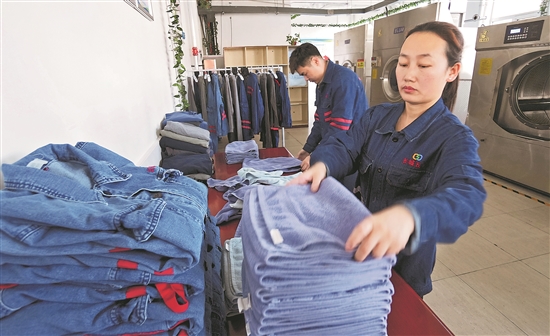 长城五矿“健康驿站”为矿工设置了工作服免费清洗流程,保障矿工随时拥有干净的工作服(1月17日摄)。
