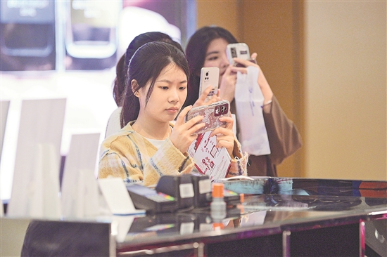 1月20日,消费者在中免集团海口日月广场免税店参与打卡赠礼活动。