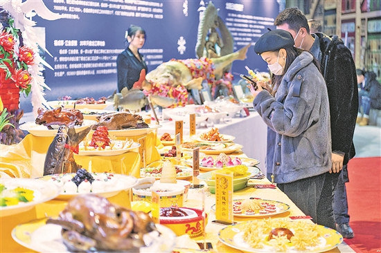 1月20日,在哈尔滨市南岗区,游客在第二届哈尔滨冰雪美食节主会场拍照。当日,由哈尔滨市政府和中国饭店协会共同主办的哈尔滨冰雪美食节开幕。新华社记者 谢剑飞 摄