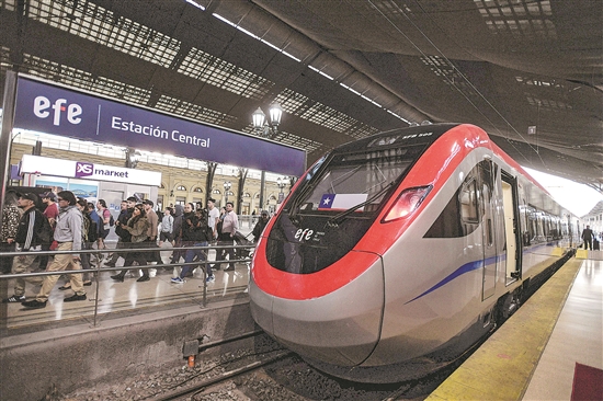 中国企业中车四方股份公司为智利研制的电力内燃双动力动车组日前在智利投入载客运营,服务智利国家铁路阿拉梅达至库里科区间。该动车组最高运行时速160公里,是当前南美洲最快的轨道列车。