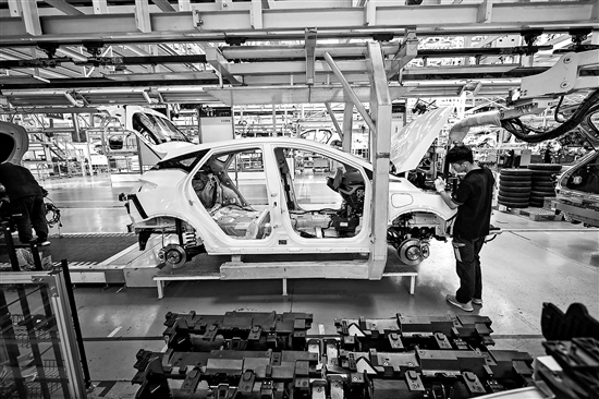 1月19日,中国工信部副部长辛国斌在国新办新闻发布会上表示,2023年中国汽车整车出口491万辆,同比增长57.9%,有望首次跃居全球第一。图为山西晋中,工人在生产汽车。