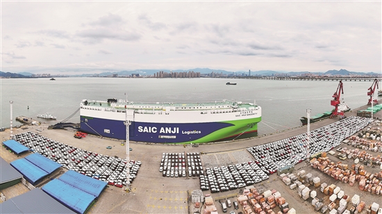 1月23日,“上汽安吉申诚”号汽车滚装船停靠在福建厦门东渡港区现代码头。