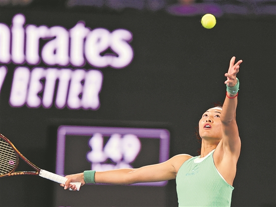 郑钦文在比赛中发球。新华社记者 马平 摄