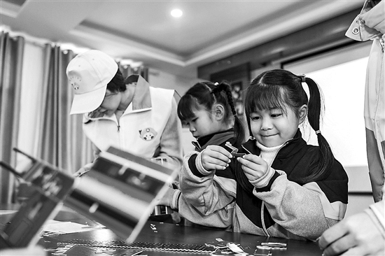 拼火车、学昆虫、做游戏……1月20日,在江西景德镇洋湖小学教室里,全校5名学生端端正正坐着,来自中国铁路南昌局集团有限公司鹰潭供电段的志愿者们为他们带来了一场别开生面的公益课。