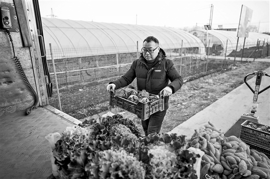 1月24日,工人在江苏省扬州市江都现代农业产业园将蔬菜装车。