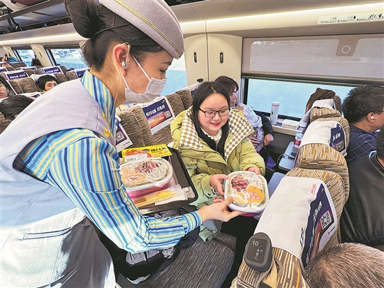 为保障大众化、普惠化和差异化需求,让旅客吃上价格实惠、品类繁多的列车餐食,负责研发、配送的广铁集团动车餐饮公司通过冷链中央厨房反复试验调整,不断推出新定版餐食。