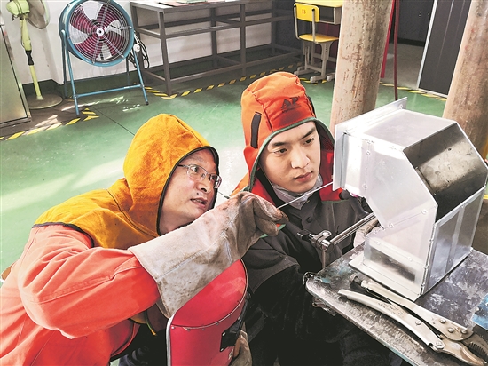 丁澄洋接过父亲手中的焊枪,在弧光中感受“学技术大有可为”——