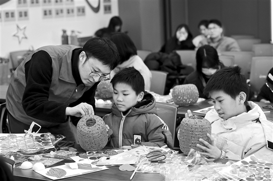 在东林镇东华村党群服务中心开办的寒假托管班上,党员志愿者指导孩子们制作新年灯笼。近日,浙江省湖州市吴兴区东林镇总工会联合社区教育中心举办“真情相伴 童贺新春”关爱服务系列活动,让孩子们在轻松愉快的氛围中度过一个充实温暖的寒假。新华社记者 徐昱 摄