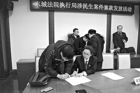1月31日,部分劳动者代表和被执行人公司来到北京市东城区人民法院,在办理完领款确认手续后,欠薪的员工陆续收到了应得的工资。