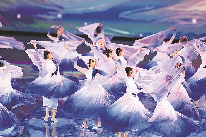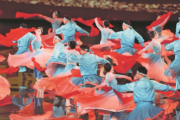 2月17日,第十四届全国冬季运动会开幕式在内蒙古呼伦贝尔市海拉尔区内蒙古冰上运动训练中心举行。图为开幕式表演。本报记者 蔚可任 摄