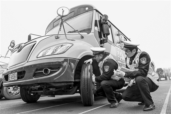 2月20日,浙江省湖州市德清县公安局交警大队下渚湖中队对辖区内的校车开展专项安全检查,重点检查校车车况、逃生装置、灭火器、破窗锤等安全设施的性能,及时排除隐患,确保学生新学期乘车安全。