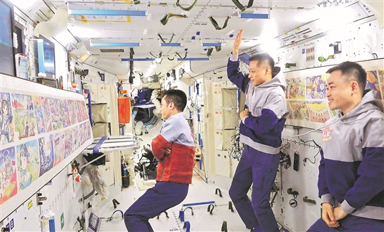 2月23日,第三届“天宫画展”在中国空间站开展。正在太空出差的神舟十七号航天员乘组在轨展示和介绍了新时代青少年畅想中国式现代化的美丽画卷。