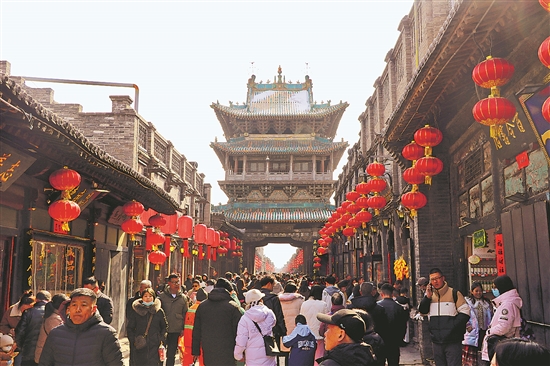 2024年春节期间,山西省平遥县平遥古城景区内人流如潮。据统计,2月10日至17日,平遥古城共接待游客626434人次,较2023年春节同期增长131.75%。假期期间,平遥古城推出了丰富多彩的年俗文化活动,吸引了中外游客全方位、多视角、沉浸式体验中华优秀传统文化。本报实习生 孙鑫仪 摄