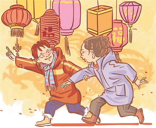 妈妈到北京时,我还没放假。工作间隙,我会打电话问问她在家里是否安好。也是在那几天,向来不爱凑热闹的我仔细在手机上搜索了“北京过年”的相关信息。然后从大年初一起,按照“隔天一次”“交通方便优先”的原则,我们先后去了两处庙会、一处灯展。在那些地方,我见到的人可能比此前一年的总量还要多。
