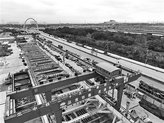 2月25日,广州地铁联合中国铁建在南珠(中)城际3标十六涌工作井施工现场举行五台盾构机集中始发仪式,标志着工程建设按下“加速键”。南珠(中)城际是第一条可实现大湾区城际与广州地铁网互联互通的轨道交通项目。项目建成开通后,中山与广州市中心将实现45分钟通达,对促进广州都市圈和珠江西岸都市圈深度融合具有重要意义。本报通讯员 陈浩 摄