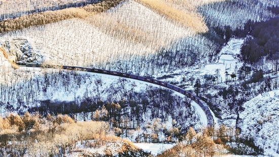 2月18日,黑龙江省最大的对俄陆路口岸城市绥芬河仍是一片白雪皑皑。中国铁路哈尔滨局集团有限公司牡丹江机务段绥芬河车间出国班组的火车司机牵引着长长的中欧班列,如蛟龙一般往复穿行在崇山峻岭之间,将“中国制造”源源不断地运出国门。阳光所照之处,为冰雪覆盖的大地披上了一层暖暖的金色。