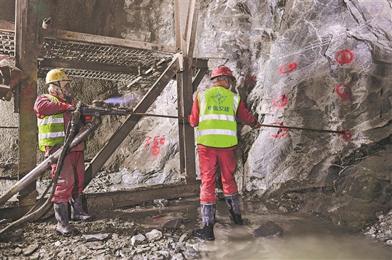 近日,在乌鲁木齐至尉犁高速公路6标段(天山胜利隧道出口端),施工人员进行钻孔作业。