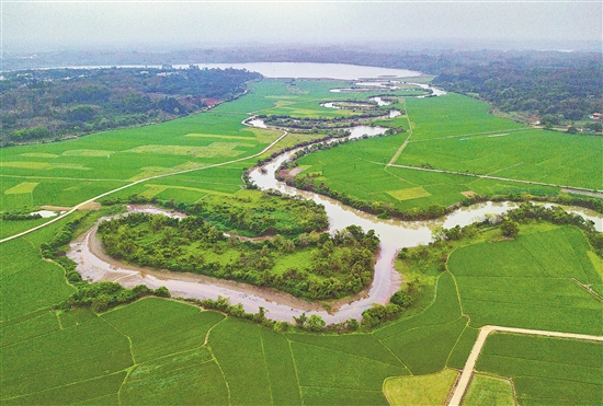 近日,位于海口市琼山区的三十六曲溪及周边早稻田春意盎然。三十六曲溪是当地重要的农业灌溉河流,其蜿蜒的河道与连片的早稻田交织成景,勾画出一幅幅充满生机的春日画卷。