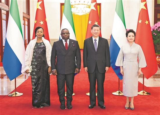 习近平指出,中非人民命运与共。中国始终把发展同非洲国家团结合作作为对外政策的重要基石。中方将秉持真实亲诚理念,加强同非洲国家相互支持和友好合作,将支持非洲工业化倡议、助力非洲农业现代化计划、中非人才培养合作计划同非盟《2063年议程》、非洲各国发展战略紧密对接,把中国的发展、非洲的发展、世界的发展进一步结合起来,推动中非合作提质升级,推动世界走向和平、安全、繁荣、进步的光明前景。中方愿同包括塞拉利昂在内的非洲朋友一道,办好今年的中非合作论坛会议,将中塞、中非友好发扬光大。
