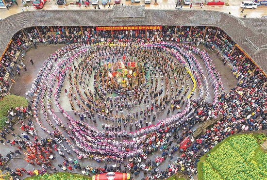 当日,梦呜苗寨举行正月十九坡会,四乡八寨近30支芦笙队欢聚一堂,开展大型芦笙踩堂、千人芦笙吹奏和芦笙舞表演等活动,吸引众多游客驻足观赏。据了解,“苗族系列坡会群”是第一批国家级非物质文化遗产。