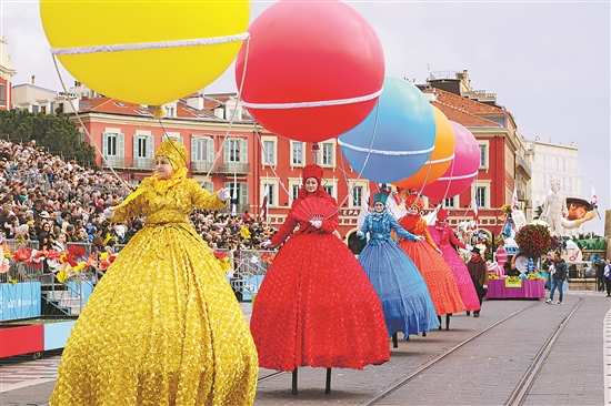 当地时间3月2日,演员在法国尼斯狂欢节上表演。