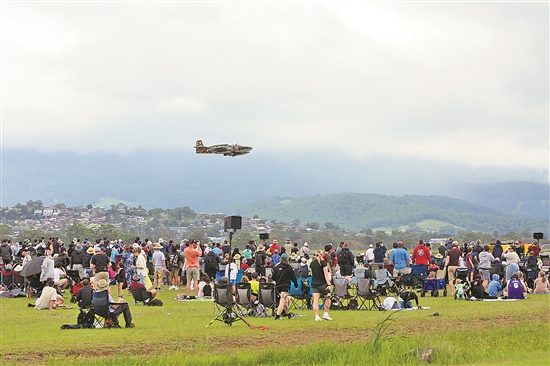 当地时间3月2日,参观者在澳大利亚谢尔哈伯航展上观看飞行表演。