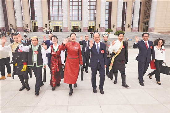 3月11日下午,十四届全国人大二次会议在北京人民大会堂举行闭幕会。闭幕会结束后,代表们满怀信心地走出人民大会堂。