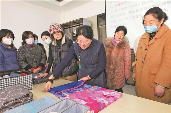 3月13日,江苏省徐州市工人文化宫,专业老师在给学员讲解整理收纳技能。