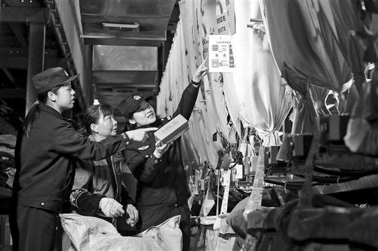 3月11日,江苏省宝应县公安局民警在辖区现代物流产业园走访了解企业生产经营情况,并对快递包裹进行安全检查。当日,宝应县公安局民警走进辖区现代物流产业园,开展“春日走访 守护安全”活动。本报通讯员 沈冬兵 摄