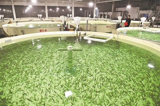 3月13日,在山东省微山县的微山湖现代渔业产业园的鱼苗育种场,工作人员在培育鱼苗,为即将到来的鱼苗投放高峰期做好准备。