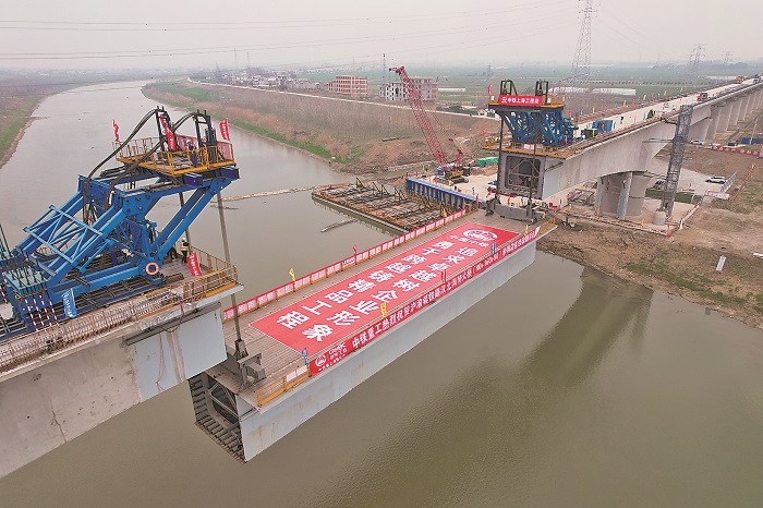 沪渝蓉高铁天门汉北河铁路特大桥顺利合龙