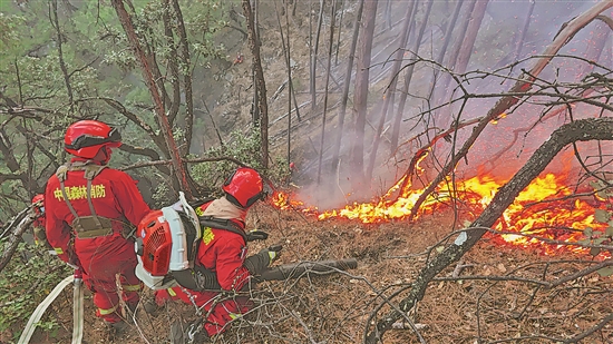 3月17日,消防救援力量抵达火灾现场,展开扑救。