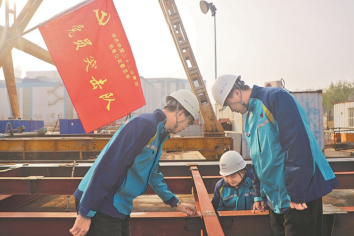 3月19日,中国二十二冶机电公司技术工人正在普阳钢铁项目现场进行质量检查。春节后开工以来,中国二十二冶机电公司各项目通过开展劳动竞赛等方式,多措并举吹响项目建设“冲锋号”。本报通讯员 宋艳辉 摄