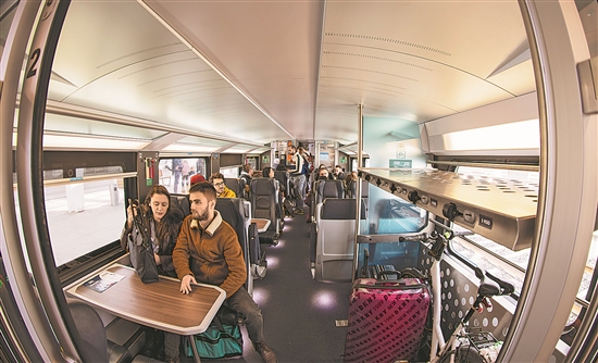 当地时间2024年3月17日,旅客乘坐匈塞铁路塞尔维亚境内贝诺段列车从诺维萨德前往贝尔格莱德。新华社发(任卫云 摄)