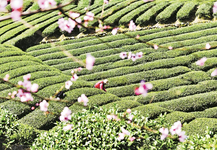 3月19日,三峡库区湖北省宜昌市秭归县11万多亩茶叶陆续进入采摘期,茶农在茅坪镇松树坳村一茶园采摘春茶。本报通讯员 王辉富 摄