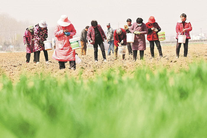 3月21日,河南省焦作市温县祥云镇平王村,农民在田间播种丹参。本报通讯员 徐宏星 摄