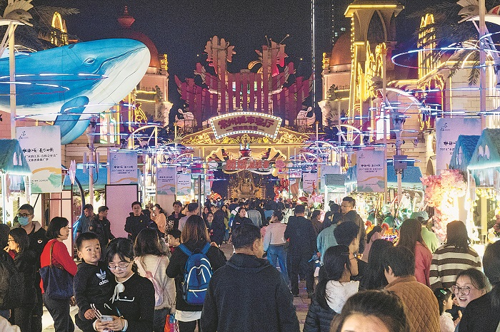图为3月22日晚,迪诺水镇游人如织。本报记者 刘金梦 摄