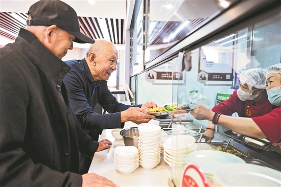 3月21日,在内蒙古鄂尔多斯市东胜区巴音门克街道团结社区老年人助餐点,老年人在取餐。近年来,东胜区加强“15分钟养老服务圈”建设,在扩大助餐点覆盖范围的基础上,打造老年人助餐品牌,提升老年人助餐服务质量。目前,东胜区已建成12处老年人助餐点。新华社记者 李志鹏 摄
