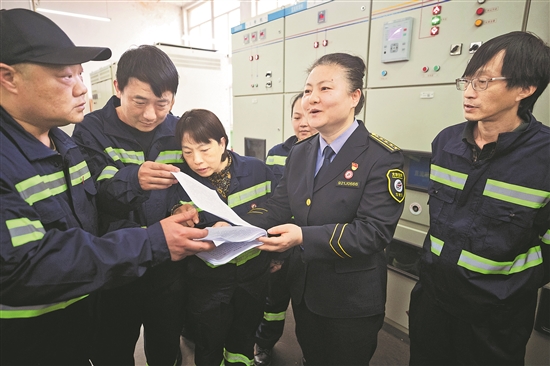 3月19日,全国人大代表、北京公交集团电车分公司动物园枢纽站管理中心103路驾驶员何少花来到电车供电所宣讲全国两会精神。