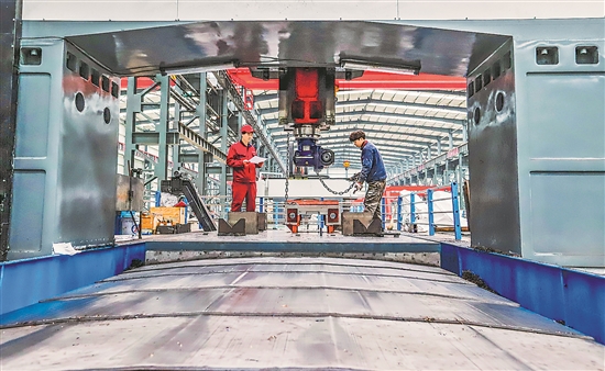 3月26日,工人在河北省遵化市经济开发区一家矿山装备制造企业组装车间工作。