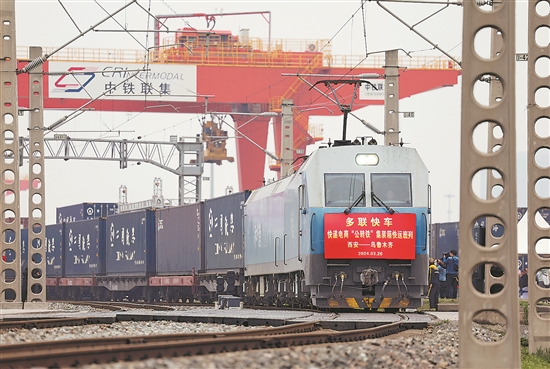 3月26日,X387次快递电商“公转铁”集装箱多联快车从西安国际港站发车,标志着多联快车(西安——乌鲁木齐)快递电商班列正式开行。这是全国开行的首趟快递电商“公转铁”集装箱多联快车班列。