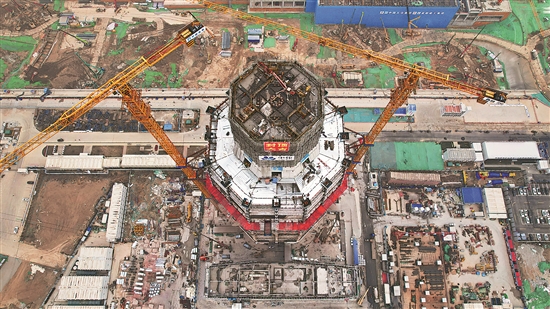 3月27日,河北雄安新区启动区标志性建筑之一,中国中化大厦实现核心筒主体结构封顶。中化大厦是首批疏解央企中国中化的总部大楼,设计结构高度150米。新华社记者 牟宇 摄