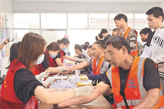 当日,项目部邀请回龙镇医院体检中心开展现场健康体检,重点检查农民工职业病患病情况,有针对性地对施工一线易患疾病进行预防,切实将关爱农民工工作抓细抓实。