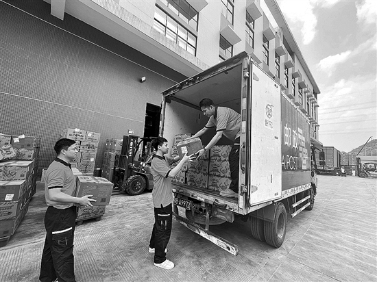 图为3月25日,中国邮政柳州分公司荣军揽投部的投递员正在一螺蛳粉产业园内装车。本报记者 甘皙 摄