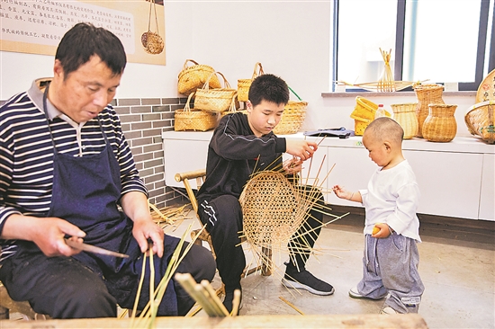日前,浙江省海宁市长安镇,一名小学生(图中)正利用周末跟着竹编艺人学习当地非遗竹编技艺。近年来,当地充分挖掘文旅资源,开发出一系列有特色的游学活动。孩子们可以在享受假日休闲的同时,感受传统文化,增加劳动技能。