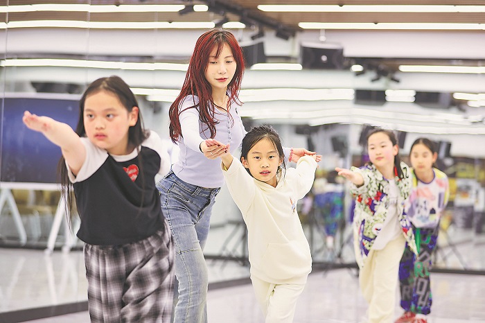 3月30日,在山东省青岛市李沧区工人文化宫,职工子女正在公益赋能课堂学习爵士舞。近年来,李沧区工人文化宫创新推出“你来点,我来送”点单式送课活动,通过开展篮球、舞蹈、茶艺、心理等方面课程,丰富职工子女假期生活。
