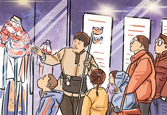 “有些游客大老远跑来,错过了馆内的讲解时段,我就帮忙解答一些问题,不让游客留遗憾。”说话间,孙宝菊从腰包里掏出抹布,轻轻擦拭着展厅玻璃上的指印。