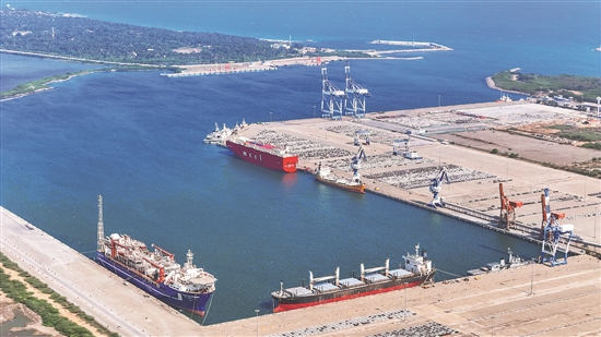 汉班托塔港是中斯共建“一带一路”重点合作项目,位于斯里兰卡南端,是一座综合性人工深水海港,许多往来亚洲、欧洲、非洲的货船在此经过。